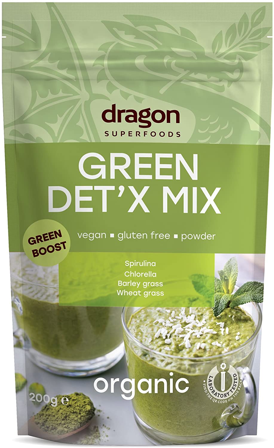 Bột Green Detox Mix 200gr – Dragon Superfoods được sản xuất từ các nguyên liệu tự nhiên, không sử dụng hóa chất độc hại hay phụ gia tổng hợp. Những thành phần nổi bật bao gồm: