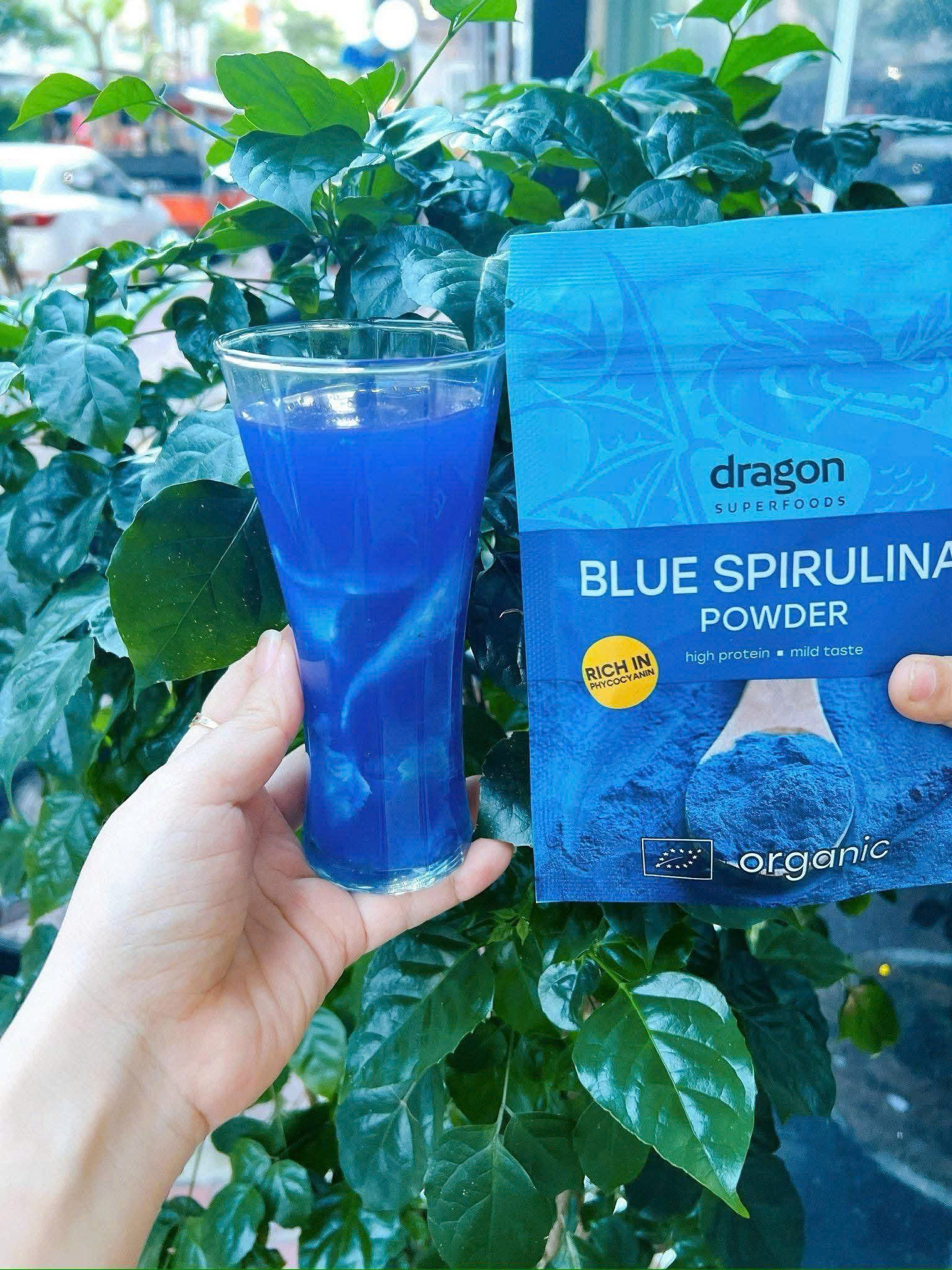 Thêm ½ muỗng bột vào sinh tố, nước ép hoặc sữa thực vật để tạo màu xanh tự nhiên và tăng dinh dưỡng.