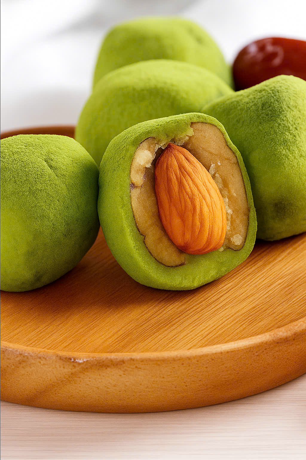Táo Đỏ Trà Xanh Bọc Hạnh Nhân là lựa chọn tinh tế cho mâm bánh kẹo ngày Tết, với vị trà xanh thanh, hạnh nhân bùi và táo đỏ dẻo ngọt, tạo nên tổng thể hài hòa, dễ ăn.