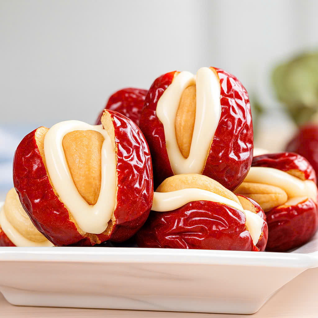 Táo Đỏ Kẹp Sữa Hạt Điều là sự kết hợp giữa lớp táo đỏ dẻo ngọt và nhân sữa hạt điều béo bùi, tạo cảm giác mềm – giòn – béo rất cân bằng. Đây là món dễ ăn, phù hợp cho cả người lớn tuổi và trẻ nhỏ.