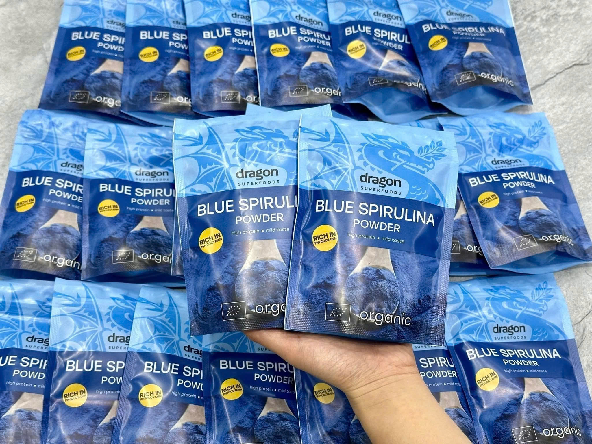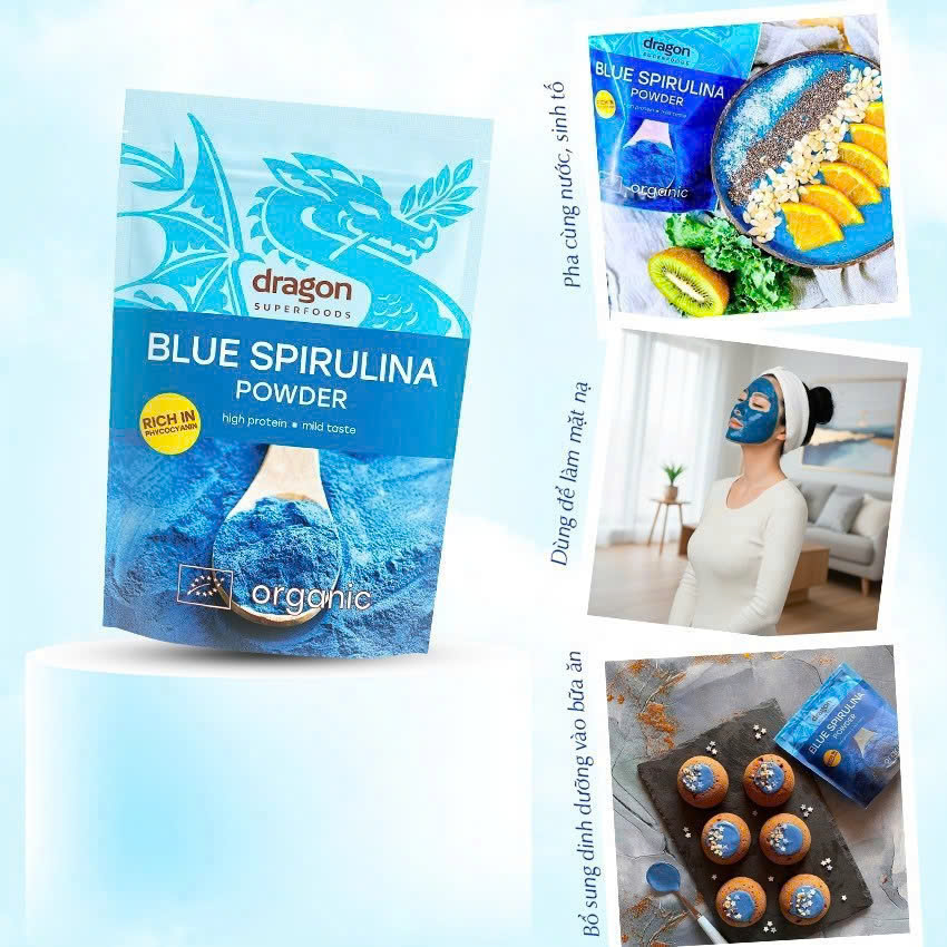 Blue Spirulina chứa hơn 60% protein thực vật tinh khiết, cùng hàng loạt vitamin nhóm B, sắt, magie và các axit amin thiết yếu. Đây là nguồn năng lượng lý tưởng giúp cơ thể luôn tỉnh táo, dẻo dai và hỗ trợ quá trình tái tạo tế bào cơ bắp.