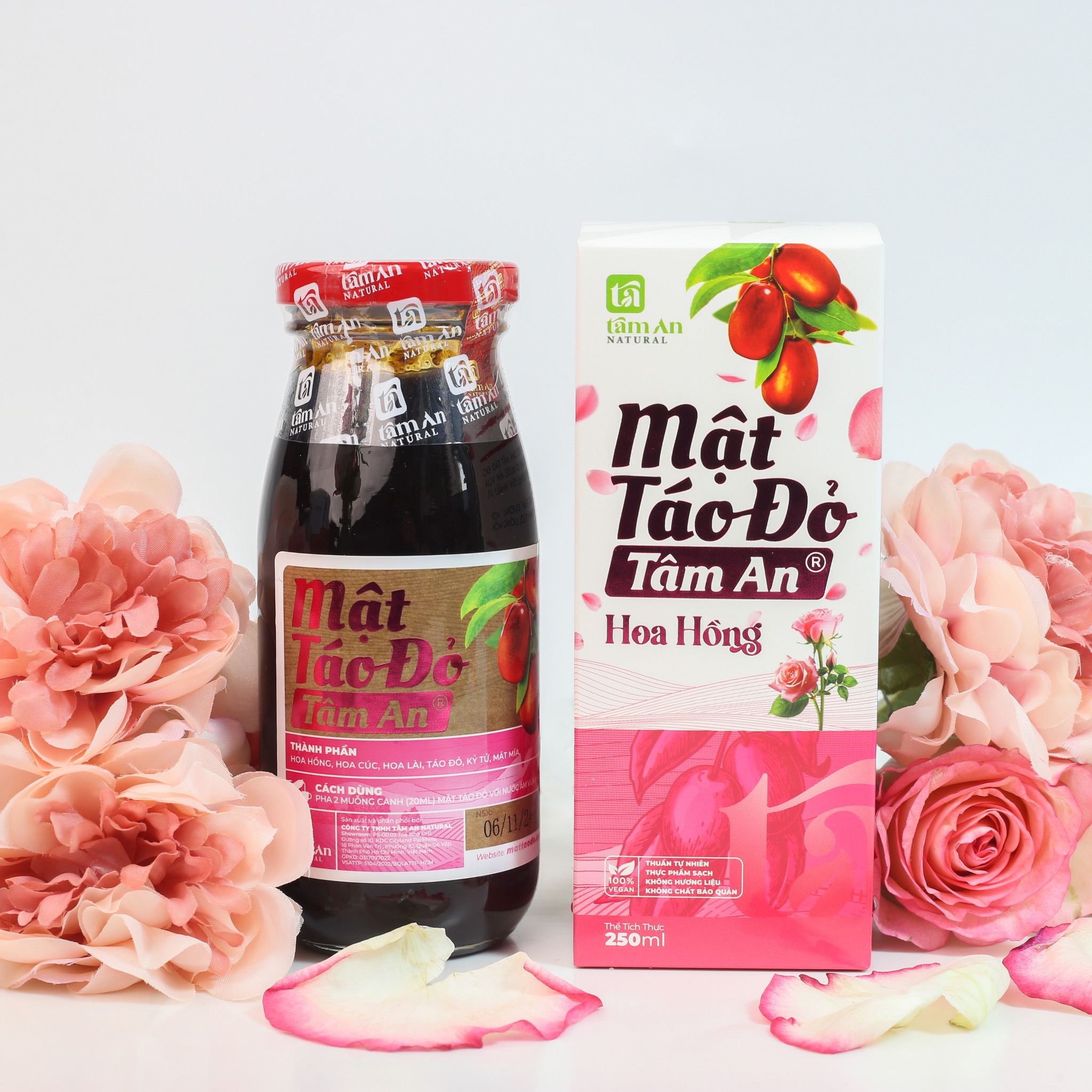 Mật Táo Đỏ Tâm An Hoa Hồng nổi bật nhờ sự phối hợp tinh tế của 6 thành phần thiên nhiên: