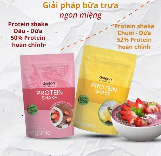 Không cần cầu kỳ chuẩn bị, chỉ với vài phút pha chế, một ly Protein Shake từ Dragon Superfoods Việt Nam có thể thay thế cho bữa sáng, bữa phụ hay thậm chí cả bữa tối nhẹ nhàng. Công thức hoàn chỉnh với lên đến 70% protein hữu cơ, kết hợp cùng các hương vị tự nhiên, giúp bạn no lâu, ít thèm ăn, hỗ trợ giảm mỡ, duy trì cơ bắp và phục hồi năng lượng nhanh chóng.