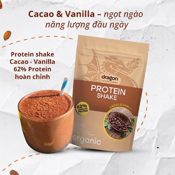 Điểm đặc biệt khiến Protein Shake từ Dragon Superfoods Việt Nam khác biệt chính là nguồn protein hữu cơ hoàn chỉnh. Sản phẩm không chứa đường tinh luyện, không chất bảo quản hay hương liệu tổng hợp, đảm bảo thân thiện với hệ tiêu hóa và an toàn cho mọi lứa tuổi.