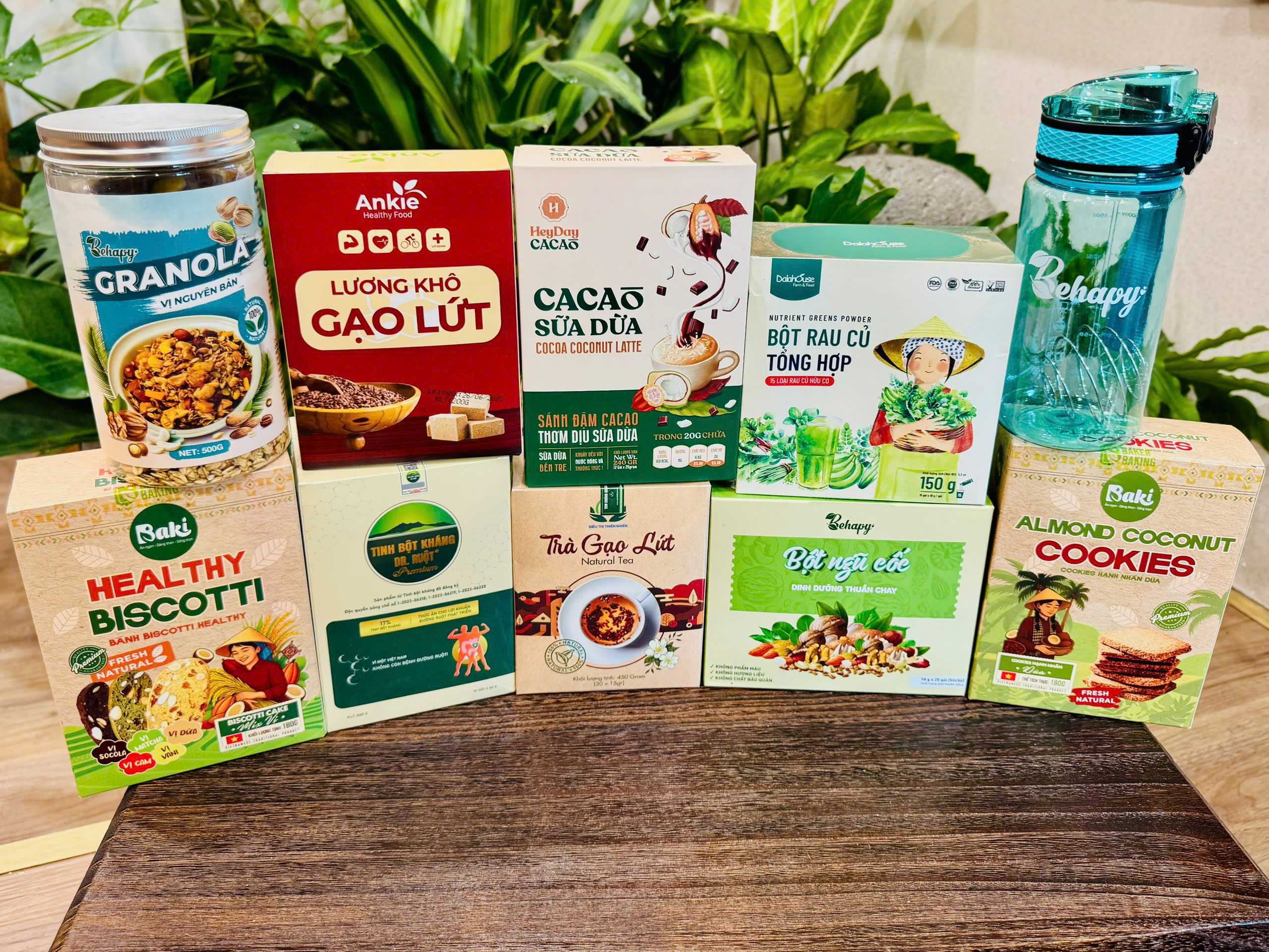 Combo Energy Boost – Tăng lực tức thì, khỏe khoắn cho guồng quay cả ngày (trà gạo lứt, tinh bột kháng premium, bột ngũ cốc, lương khô gạo lứt, biscotti mix vị, cookies hạnh nhân dừa, granola, bột rau củ tổng hợp, cacao sữa dừa).