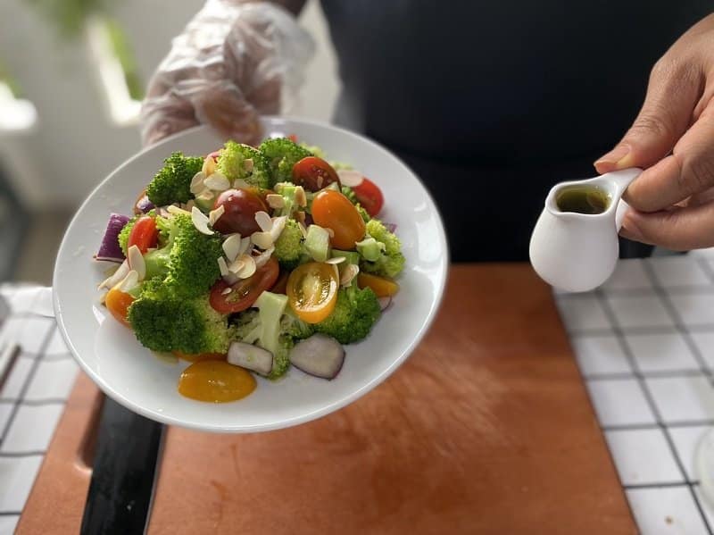 2.2. Salad bông cải xanh kèm cà chua bi, hạnh nhân & sốt giấm balsami