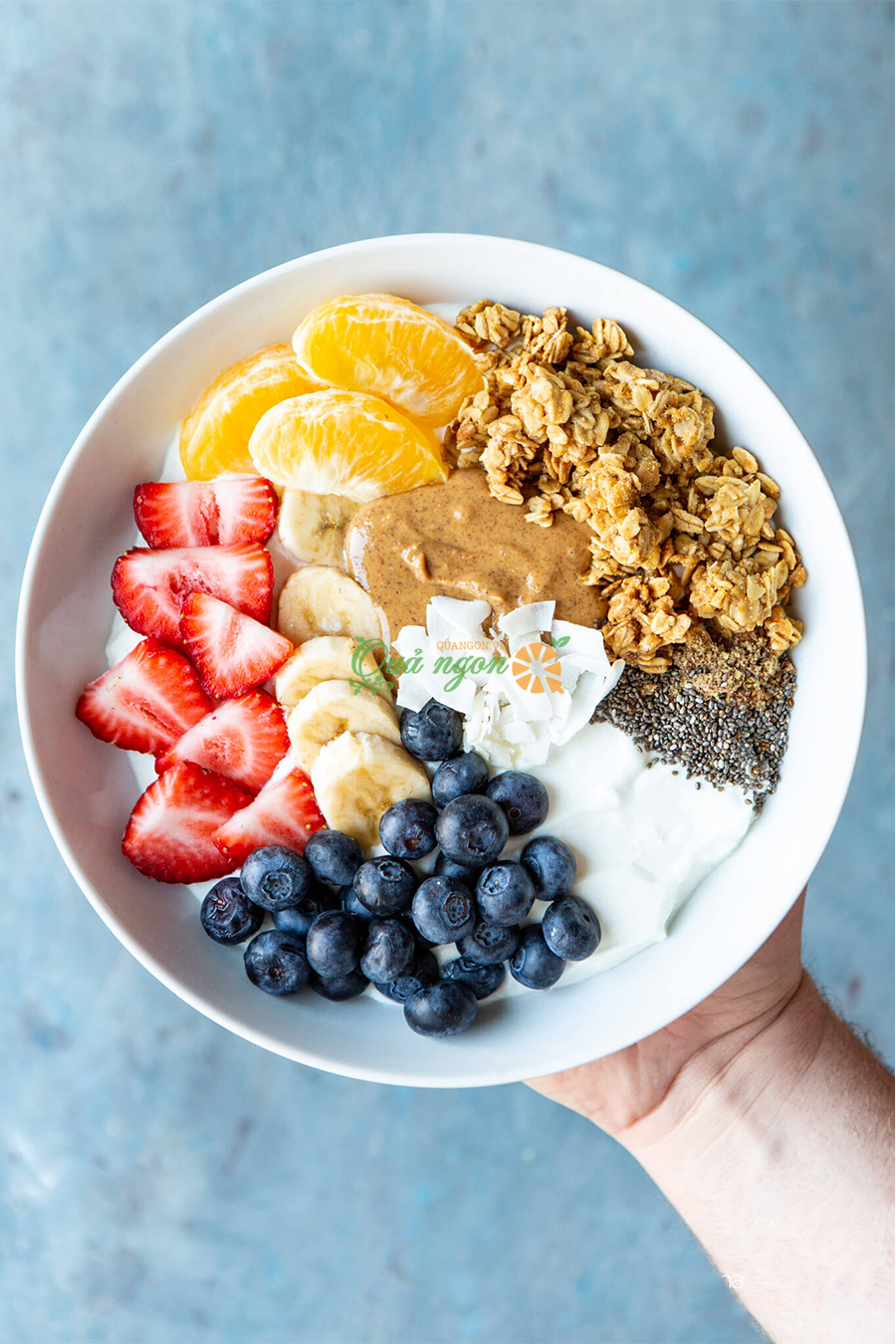 • Ăn cùng hạt chia, yến mạch, mè đen hoặc đậu đỏ – giúp bổ sung chất xơ và đạm thực vật, hạn chế hấp thu đường nhanh.